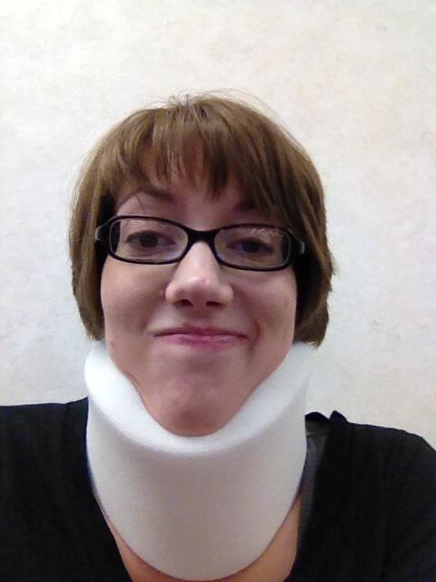 They also gave me muscle relaxers and prescription ibuprofen and a SHOT. The shot made me feel cozy, which was necessary, because without it I would have torn that neck collar of in a minute flat, like I want to do now. Apparently, the shot made my hyper-sensitive fear of strangulation (the reason why I don't already own a Velma-style turtleneck) fade enough that I could be comfortable in the brace thing. But the shot has worn off now, and it is only fear of agony that is keeping the brace on.